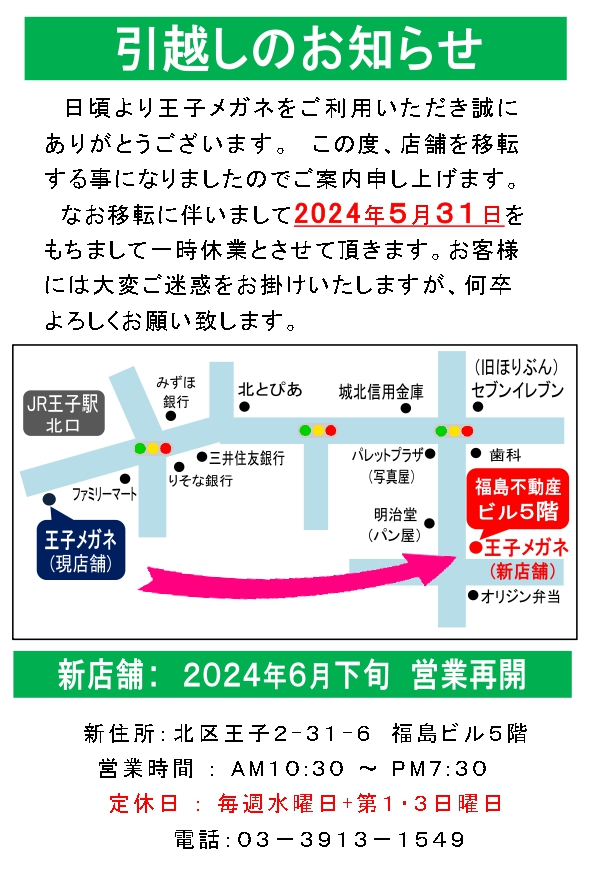 【移転先住所】東京都北区王子2-31-6 福島ビル5F